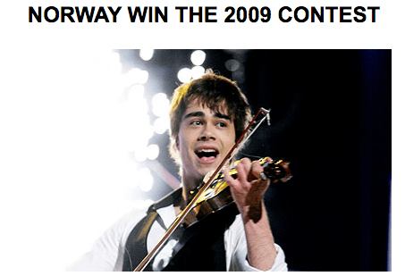 Eurovision Winner – Alexander Rybak – FairytaleUK Eurovision Entry – Jake Ewen – It’s My Time